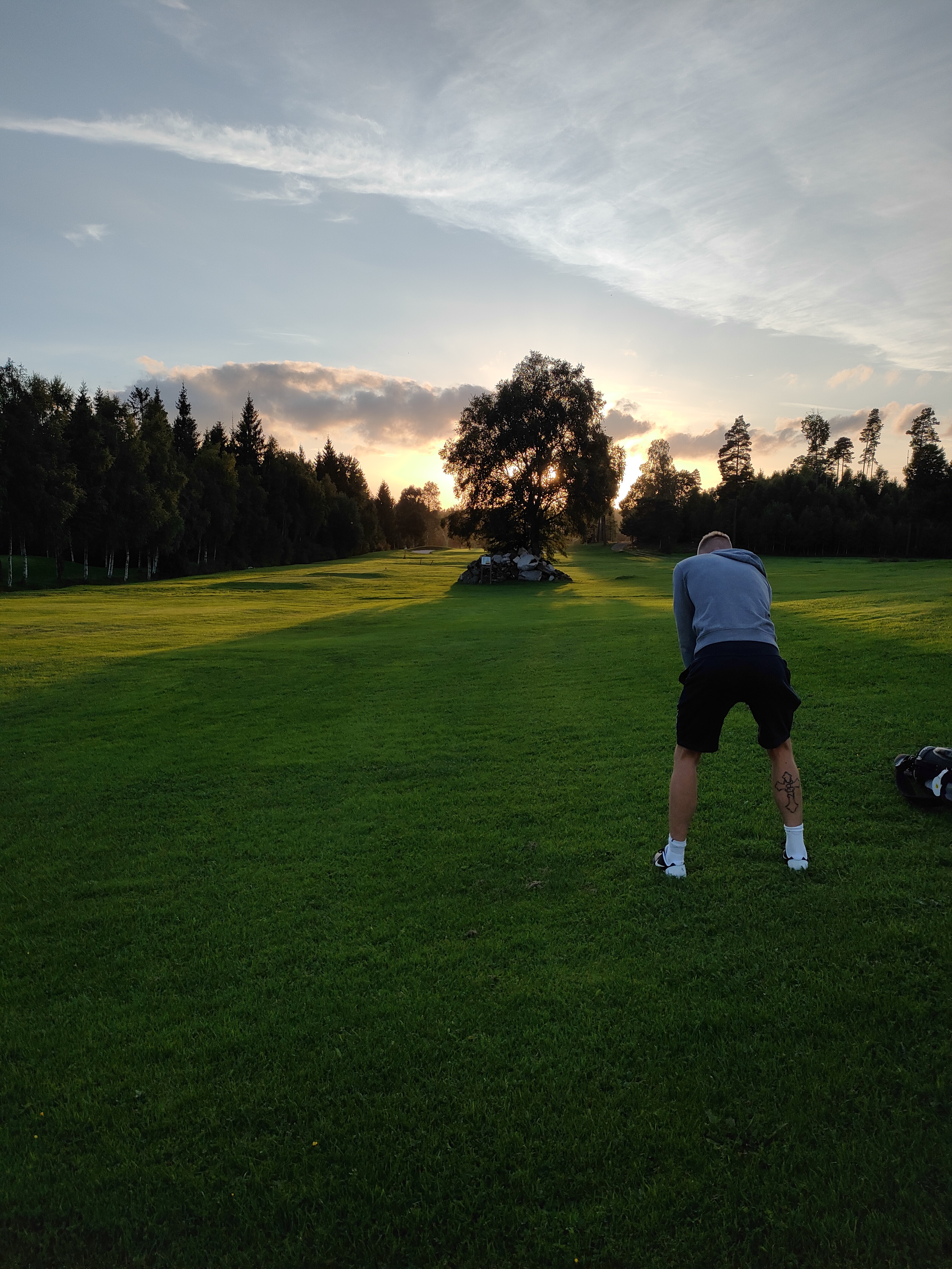 - Avståndsplattor och gul‑svarta avståndspinnar (150 m till green).